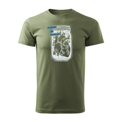 Koszulka z sercem serce dla biologa prezent dla lekarza biologa męska khaki REGULAR