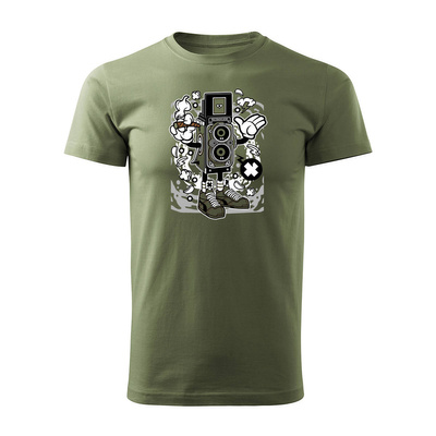 Koszulka z aparatem fotograficznym kamera kamerą dla fotografa męska khaki REGULAR