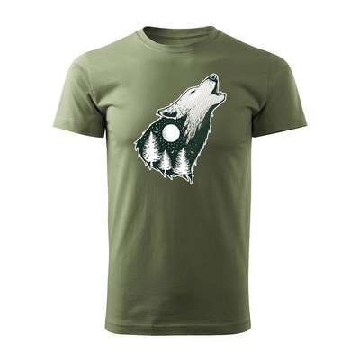 Koszulka z wilkiem camper camperem Bieszczady Tatry z górami męska khaki REGULAR