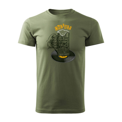 Koszulka rock z gitarą elektryczną gitara rockowa dla gitarzysty męska khaki REGULAR
