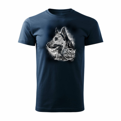 Koszulka z owczarkiem niemieckim owczarek niemiecki wilczur męska granatowa REGULAR